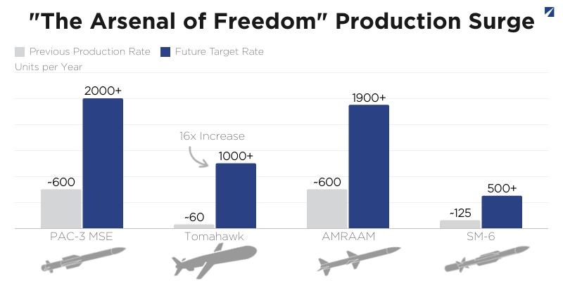 The surge in missile production strengthens U.S. naval posture and integrated defense coverage across the Indo-Pacific. Ongoing production growth of PAC-3 MSE, Tomahawk, AMRAAM, SM-3, and SM-6 missiles enables the U.S. to sustain a layered, persistent defense spanning the air, land, and maritime domains. Forward-deployed U.S. naval vessels and aircraft equipped with these systems, alongside allied defense assets across the region, reinforce alliance interoperability, ensuring compatibility between U.S. and partner platforms while supporting a more resilient regional deterrent. To sustain this strategic posture, production growth is likely to remain steady in the coming years, creating expanded opportunities for industry participation.