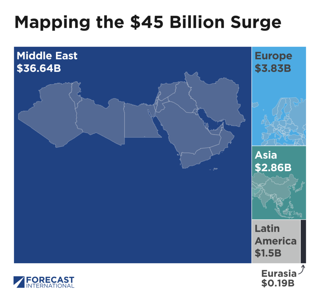 During the first quarter of 2026, the U.S. government approved over $45 billion in potential Foreign Military Sales (FMS) with the overwhelming majority supporting Middle Eastern allies. Of total global approvals, the region garnered 81 percent, or over $36.6 billion in estimated sales value for defense equipment.